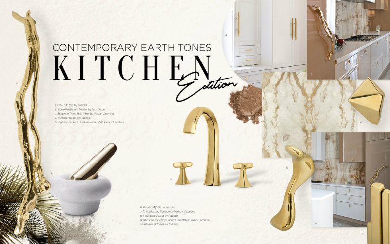 The trend combination between Decorative and Earth Tones can be described as Hardware Contemporary Earth Tones. One of the main contributors to this Trend is one of Covet Group Brands, PullCast! This luxury brand gets most of its inspiration from Nature, so no wonder it has plenty of Hardware Pieces that follow this trend where we witness a luxury combo between Hardware, Earthy Tones and Neutral Colors!