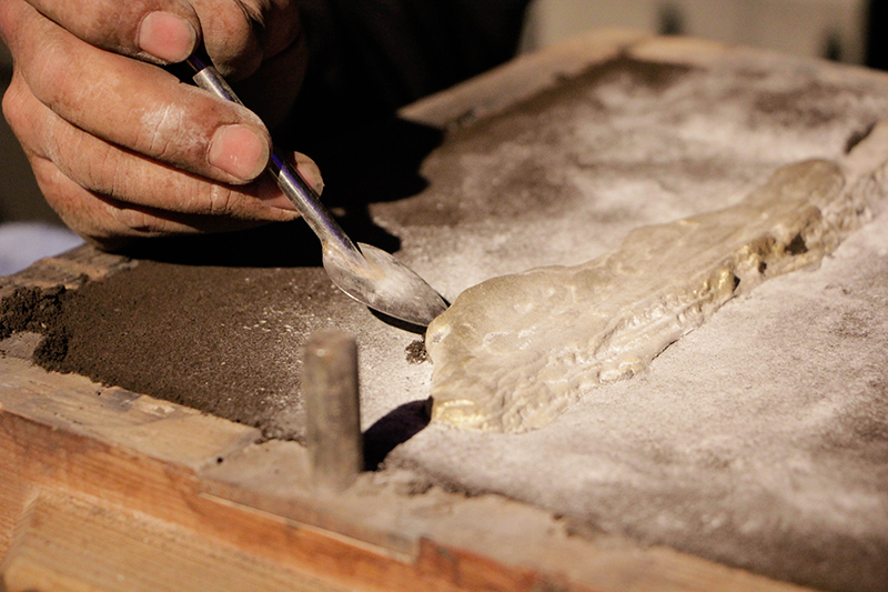The art of casting metals into a chosen shape and size. The process starts by melting metal into a liquid, pouring it in a mold with a cavity of the desired shape, and removing the material, or casting, after the final work gets cool and then solidified. The solidified part can be ejected or even broken out of the mold. This technique is one of the most used for making intricate forms that would be difficult to have from other methods.